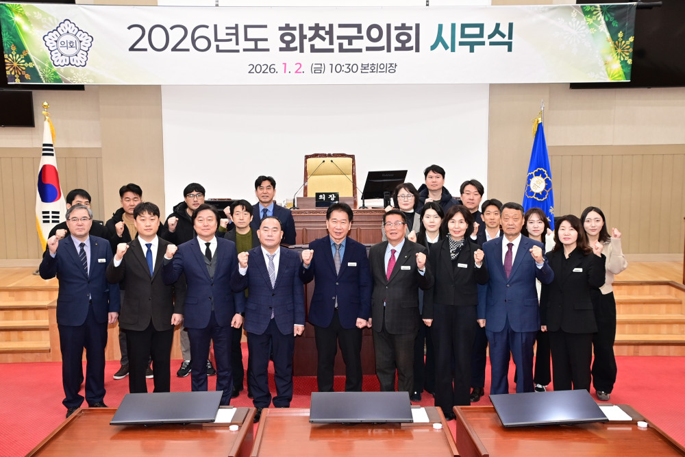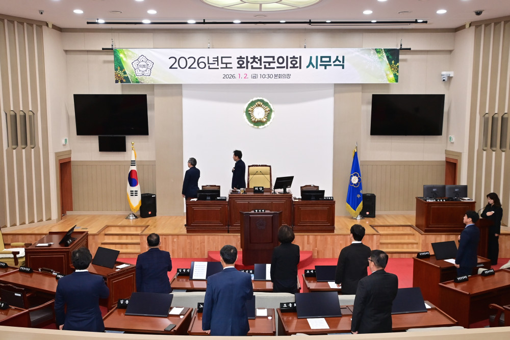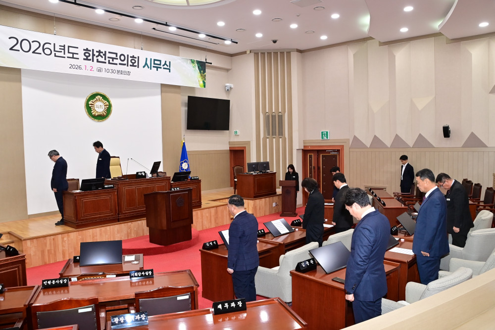 2026년도 화천군의회 시무식 페이지 정보 작성자 : 운영자 날짜 : 작성일26-01-02 11:42 조회 : 40회 이전 다음 목록 본문 2026년도 화천군의회 시무식 이전 다음 목록
