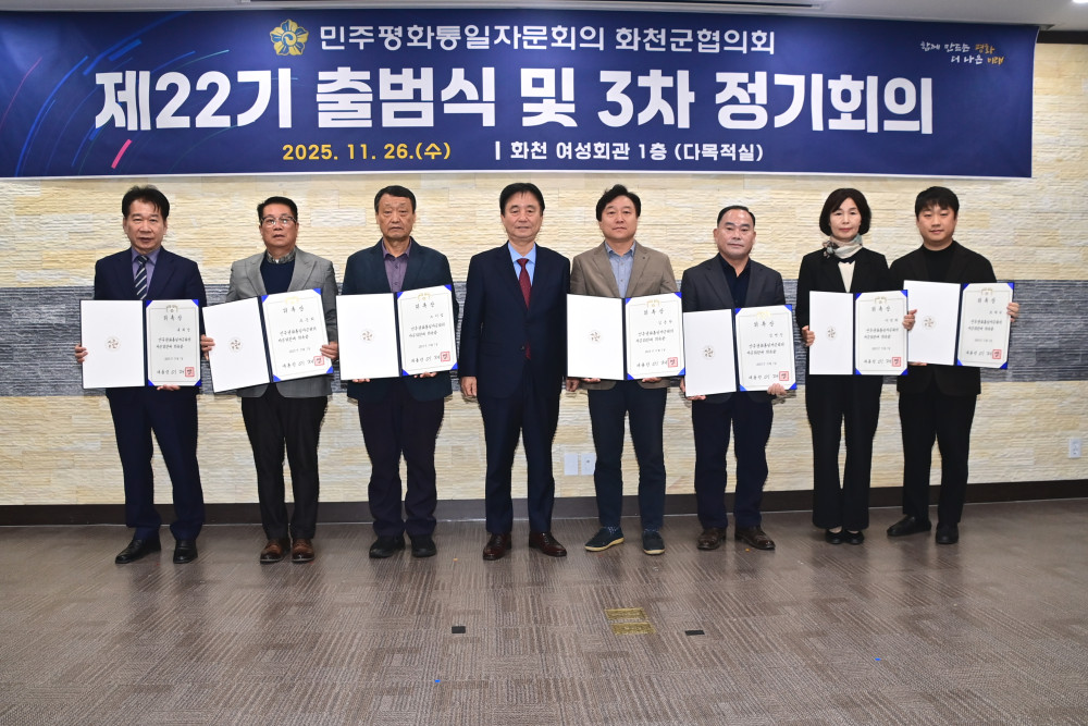 민주평화통일자문회의 화천군협의회 제22기 출범식 및 3차 정기회의 페이지 정보 작성자 : 운영자 날짜 : 작성일25-11-26 15:19 조회 : 38회 이전 다음 목록 본문 민주평화통일자문회의 화천군협의회 제22기 출범식 및 3차 정기회의 이전 다음 목록