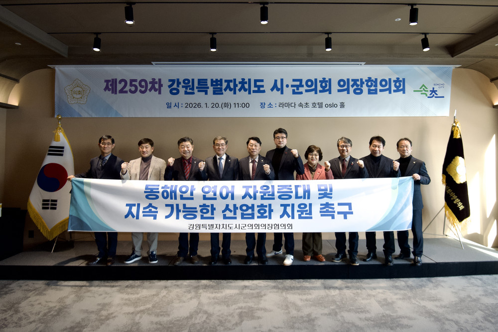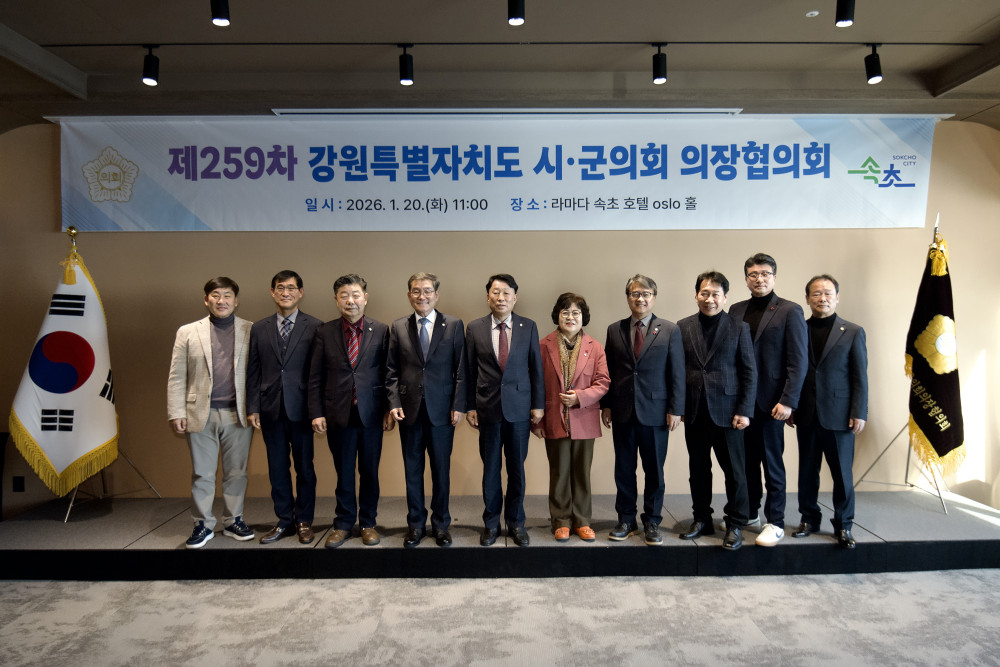 제259차 강원특별자치도 시.군의회 의장협의회 페이지 정보 작성자 : 운영자 날짜 : 작성일26-01-20 12:42 조회 : 33회 이전 다음 목록 본문 제259차 강원특별자치도 시.군의회 의장협의회 이전 다음 목록