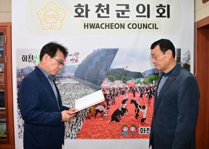 군민과 함께하는 의정, 행복한 군민, 공정과 상식으로 만들어가는새로운 화천군의회